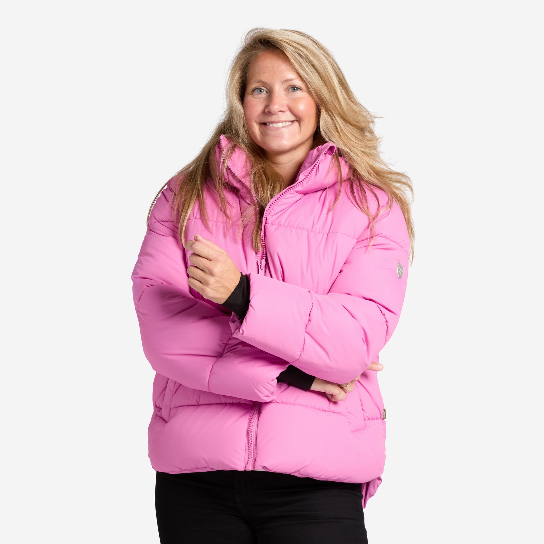 Stay warm and comfortable with the Aurora Reco Jacket, a short and soft winter coat made from recycled polyester with wind- and water-resistant properties. Light imitation down filling provides warmth without heaviness, and the removable hood with drawstring adds flexibility and protection.