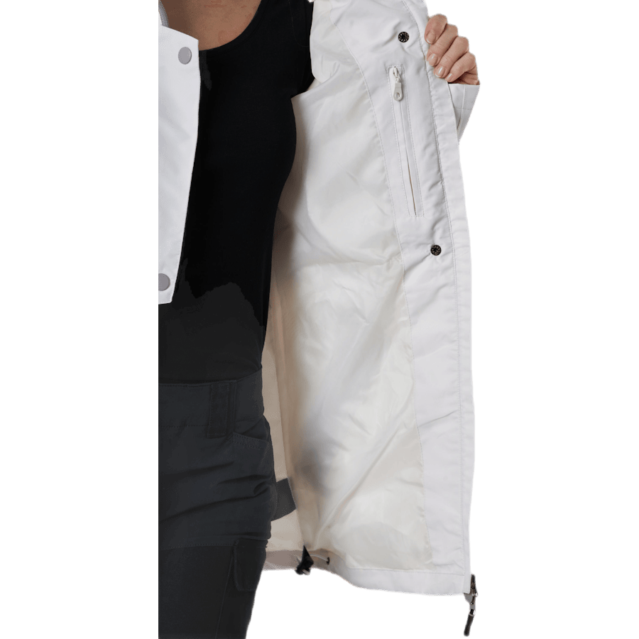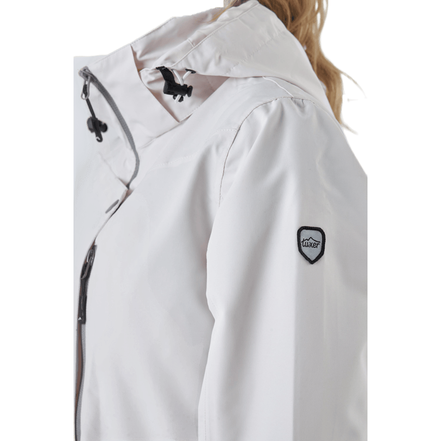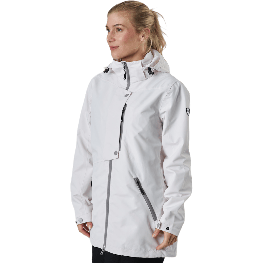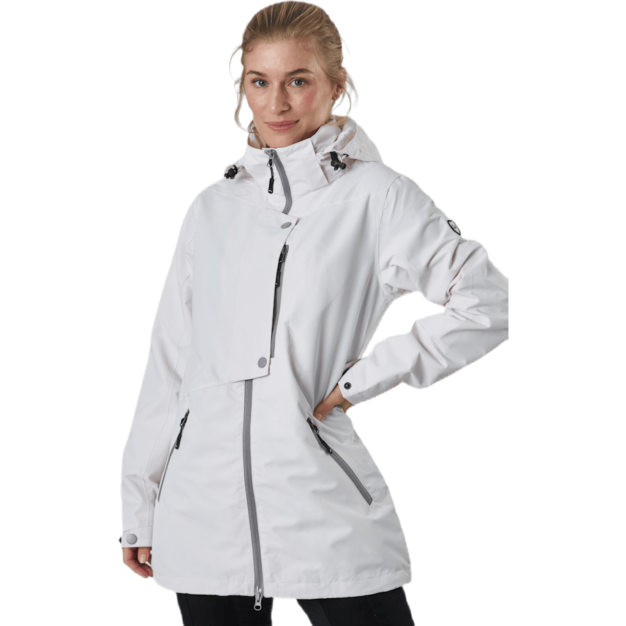The Leanna Jacket is a versatile, lightweight, and fitted jacket. It features a zipper at the front and hood.
